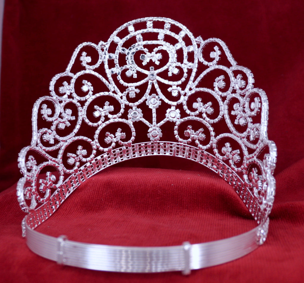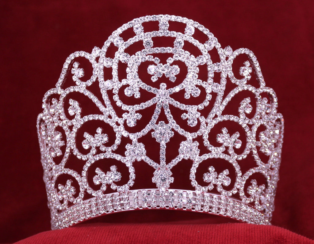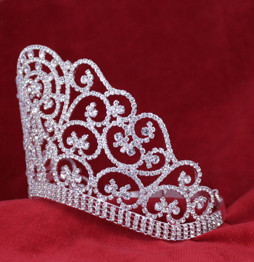 Beautiful art deco crown, with scroll motif and graceful lines, great detail work from our expert jewelers. This crown is ideal for many occasions including pageants, homecomings, fairs, and more.