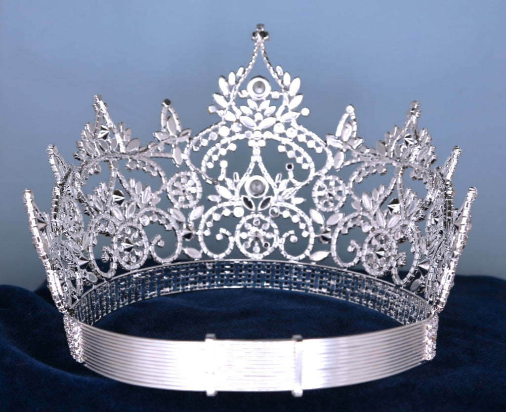 Magnificent Rhinestone Crown Tiara, made with the finest rhinestones and silver-plated metal. Incorporated in this design are stones in different sizes.